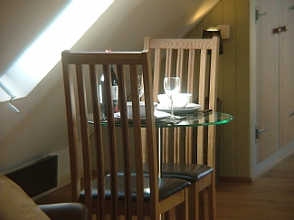 The Sail Loft is an open-plan studio apartment, with kingsize bed, a seating area with sofa, dining area with table and 2 chairs and shower room with underfloor heating and heated towel rail. The apartment is warm and comfortable.
